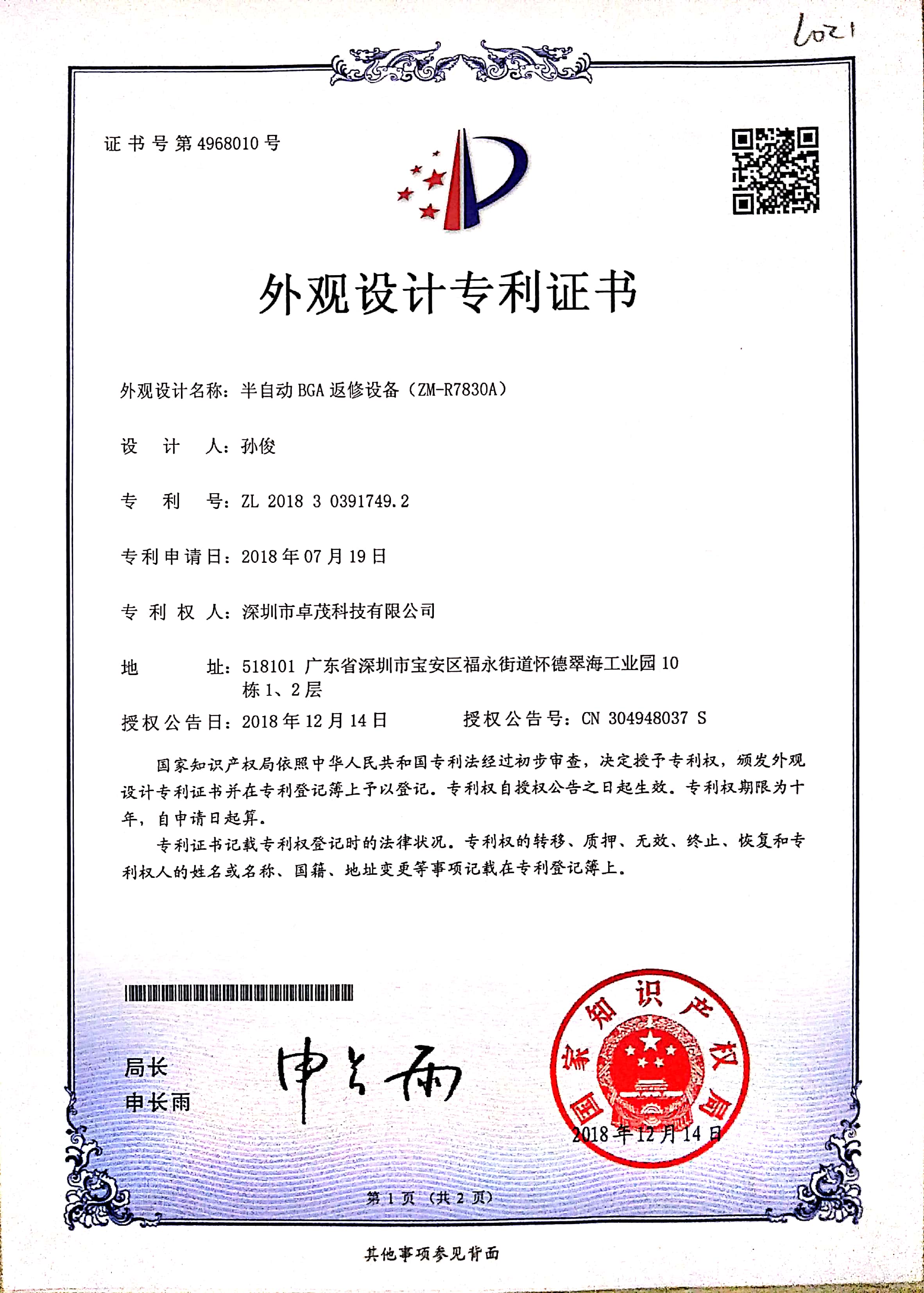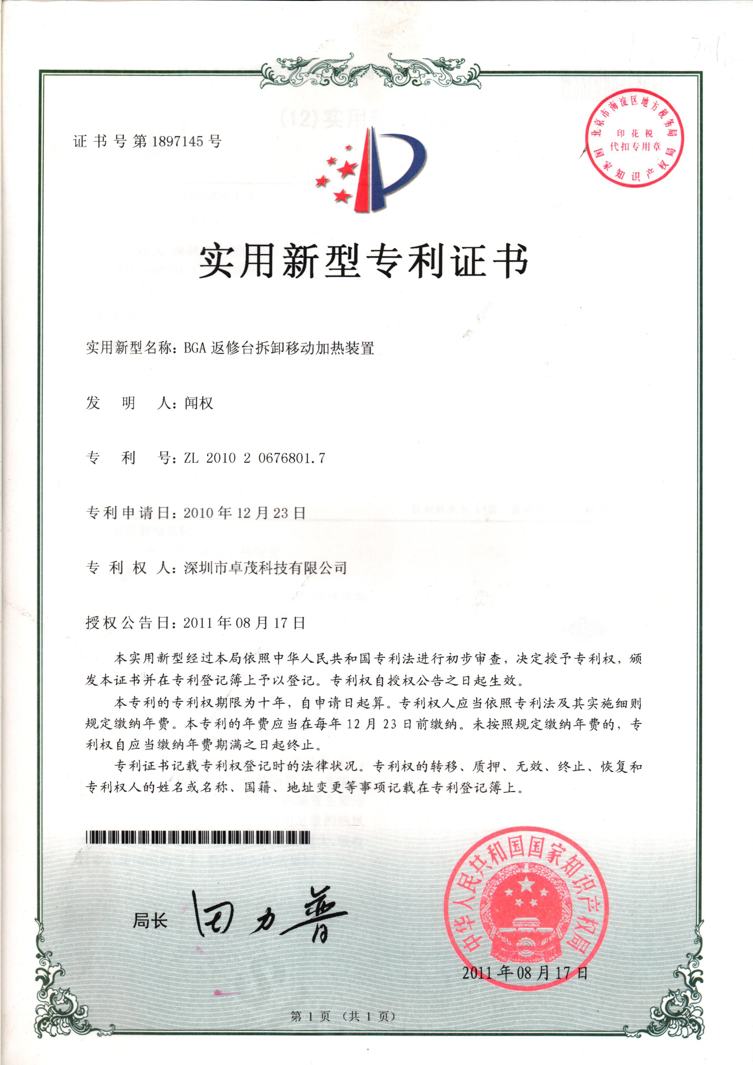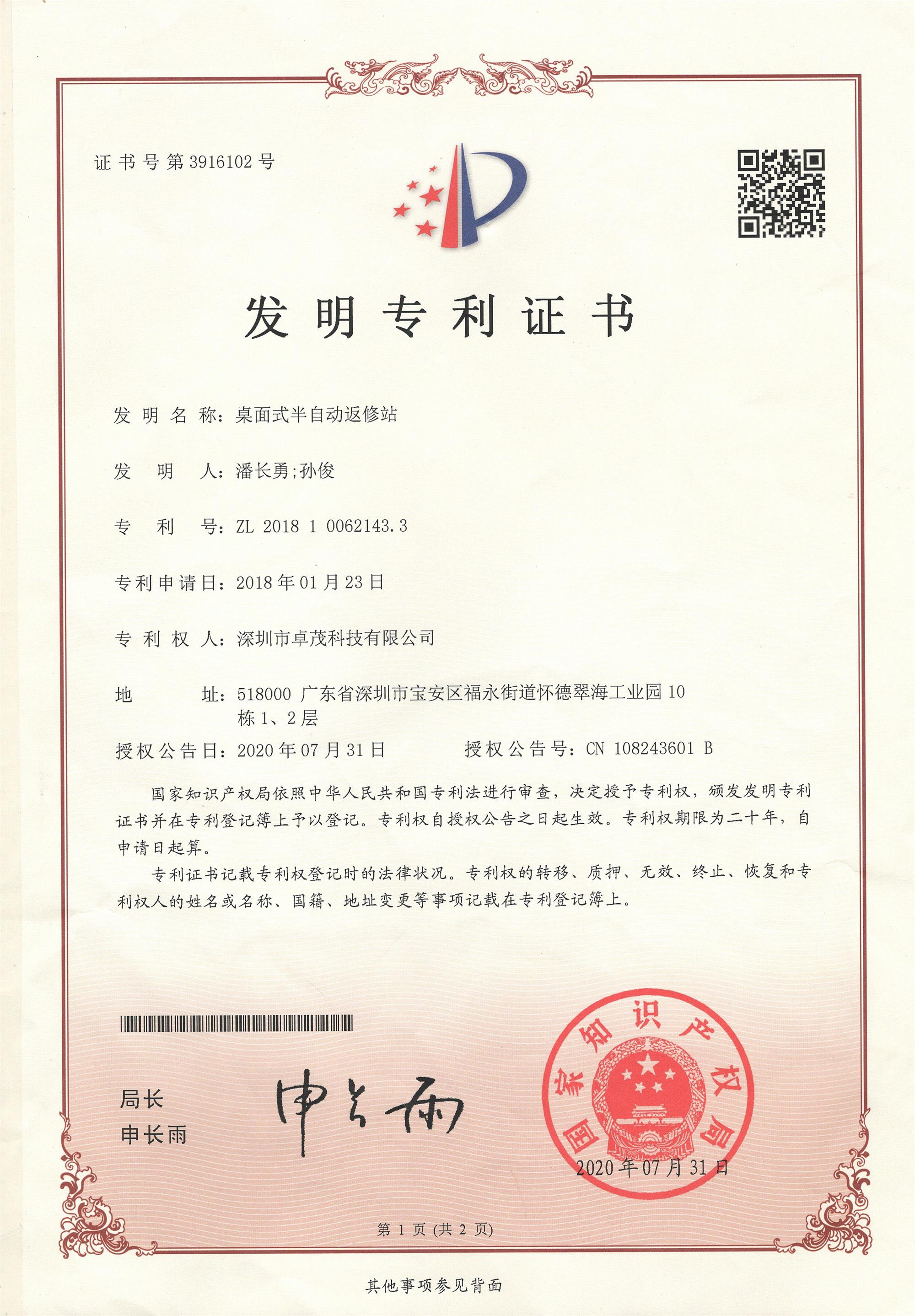 国内第一台全自动BGA植球机诞生并成功申请发明专利并获得授权