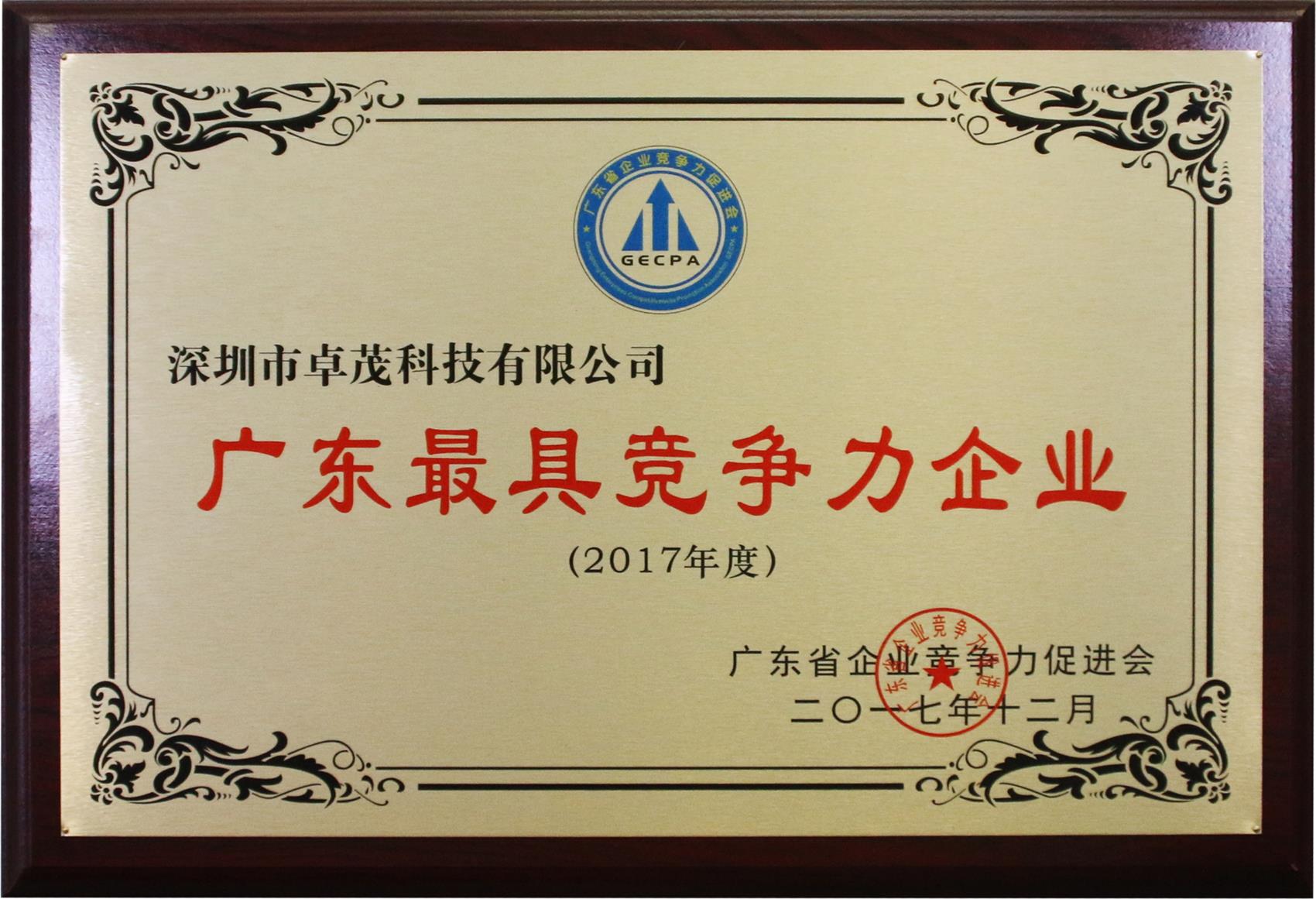 获得2017年度“广东最具竞争力企业”殊荣