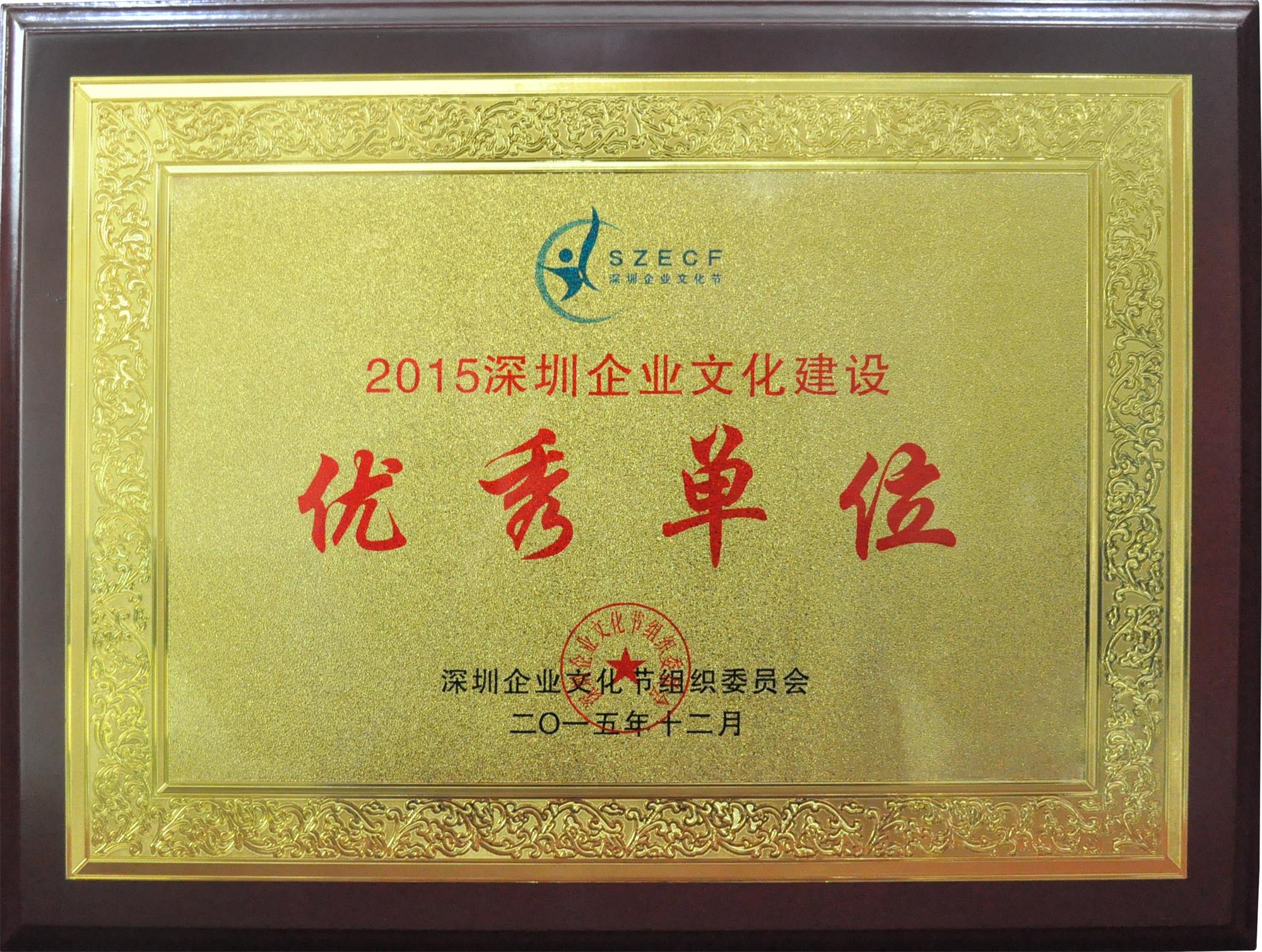 获得深圳市企业联合会颁发的“2015年度深圳企业文化建设优秀单位”称号