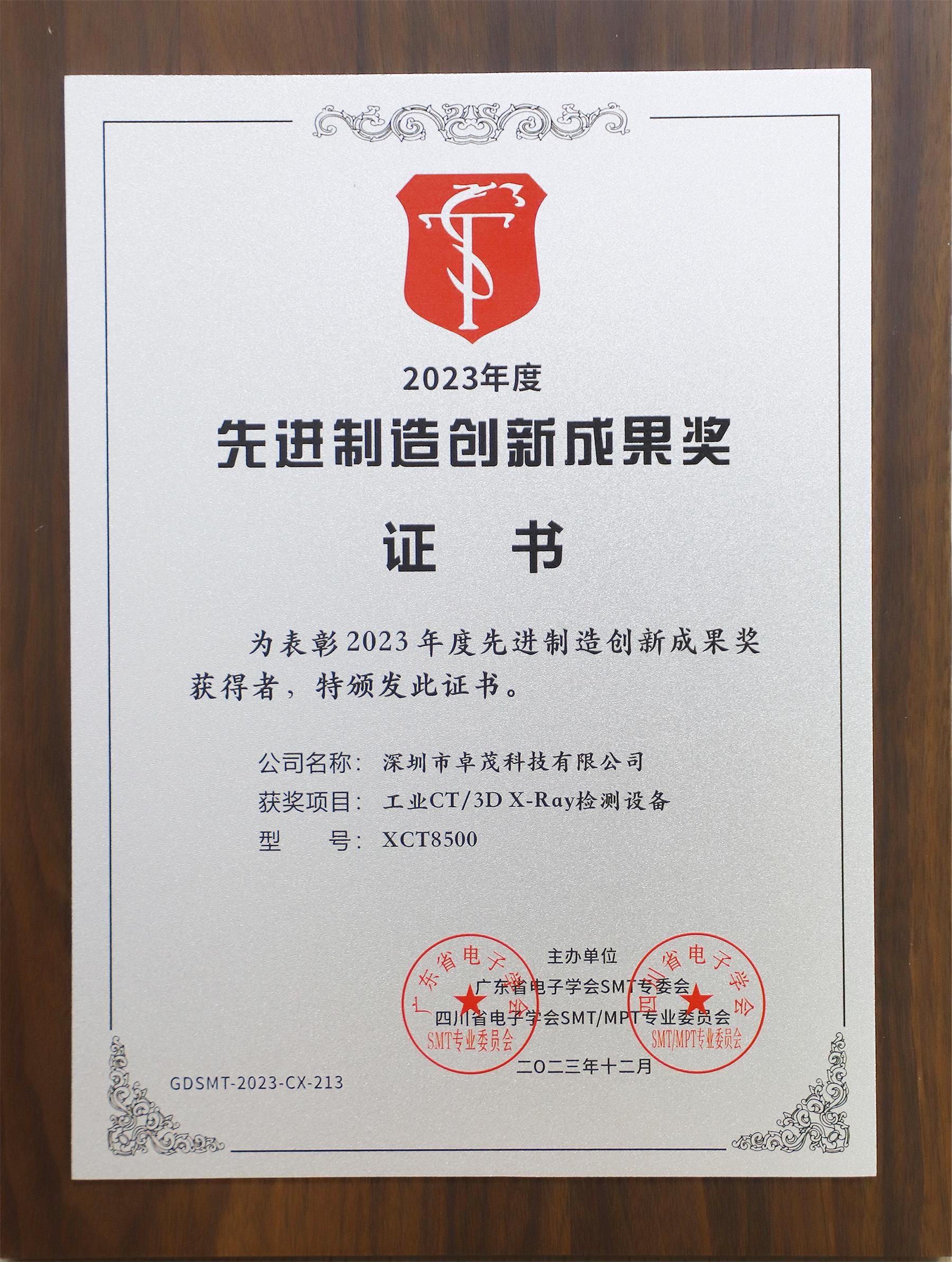 3DX-Ray检测设备获得广东省电子学会颁发的“中国SMT创新成果奖”