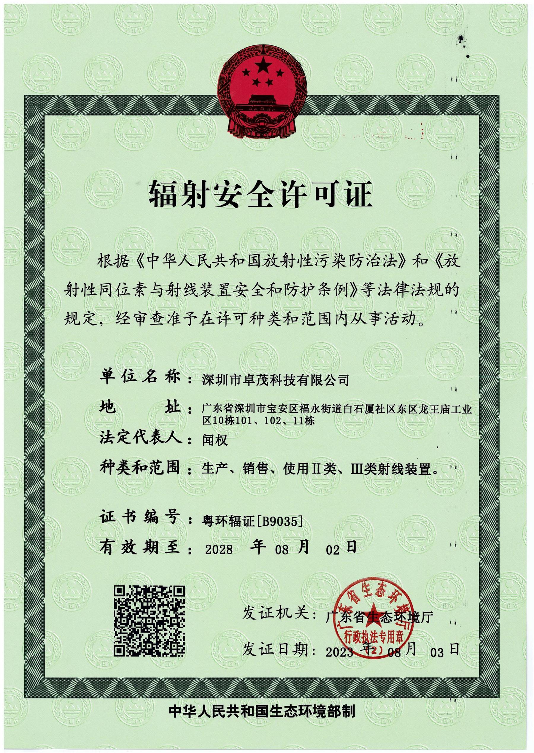 微焦点X射线检测设备获得广东省环境保护厅实行豁免管理认定