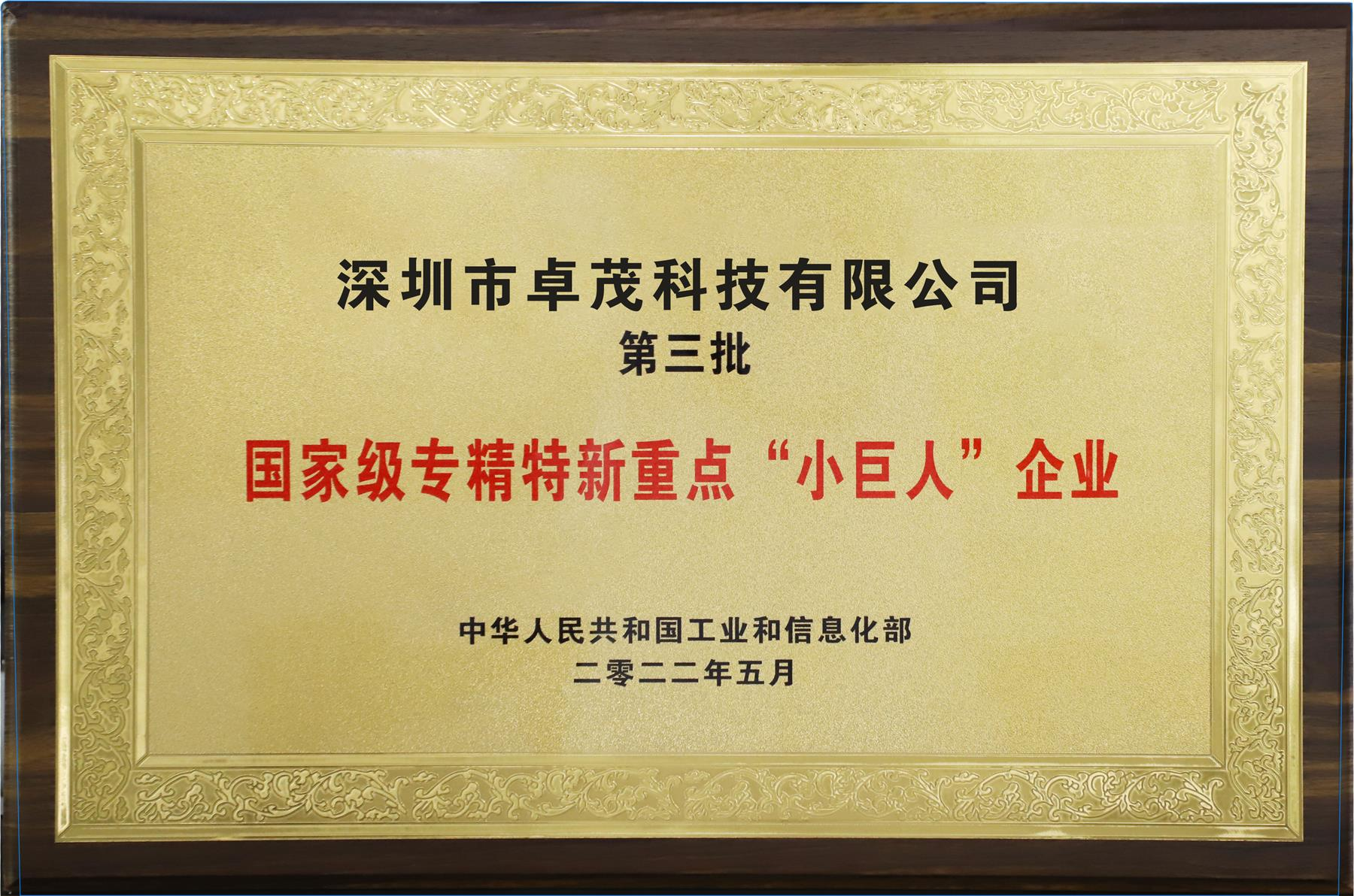 荣获工业和信息化部国家级专精特新重点“小巨人”企业